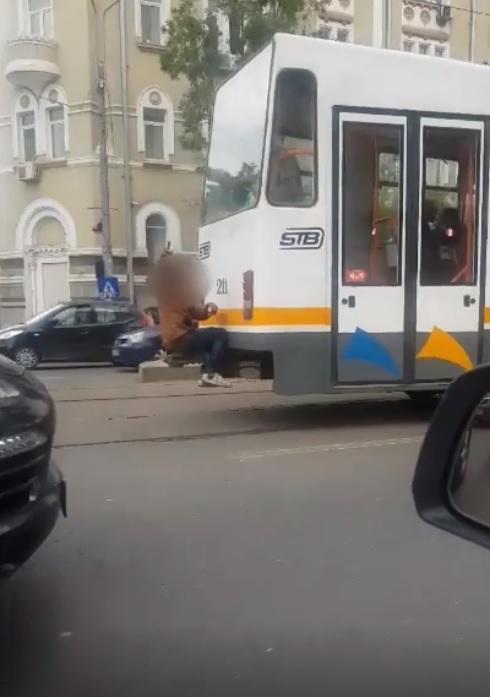 Adolescent filmat pe cârligul tramvaiului care merge cu viteză, nimeni nu intervine ca să-l salveze, în Bucureşti