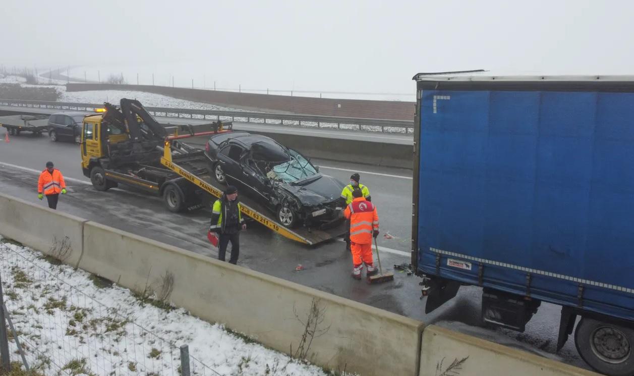 Adolescent român, găsit leșinat într-un Mercedes făcut praf într-un TIR, pe un drum din Austria | Sursa foto: heute.at