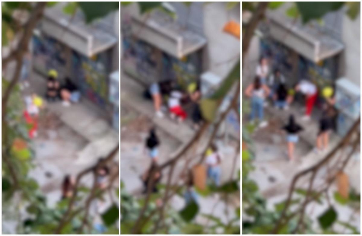 Adolescente filmate inhalând "funny gas", în spatele unei clădiri, în prima zi de şcoală