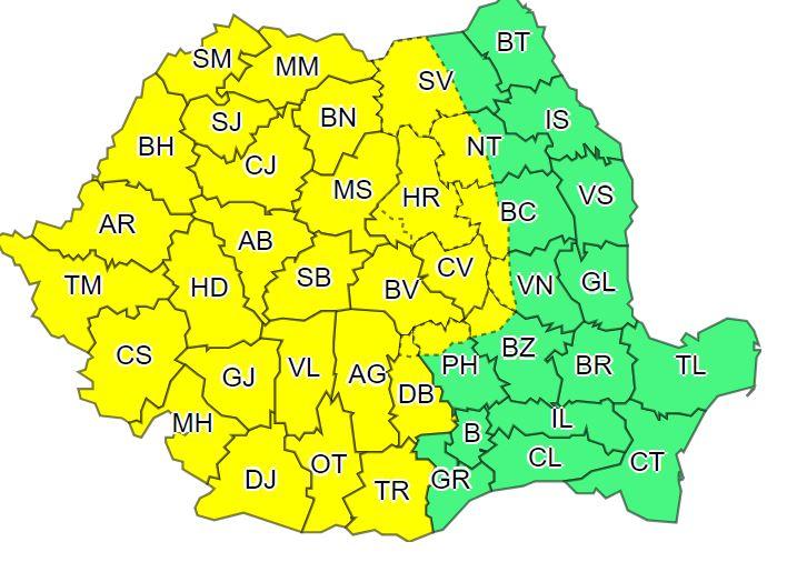 Alertă meteo de ultimă oră. Cod galben de furtuni, ploi torenţiale şi grindină, în aproape toată ţara, până vineri dimineaţă