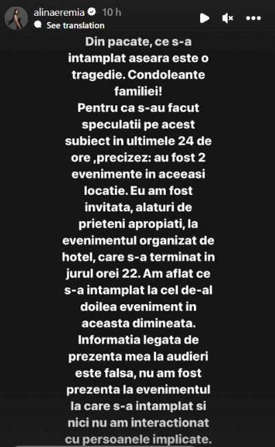 Alex Velea și Alina Eremia, primele mesaje după petrecerea sângeroasă din Padina. Cei trei suspecţi de crimă, fiii vrăjitoarei Sidonia, au fost reţinuţi