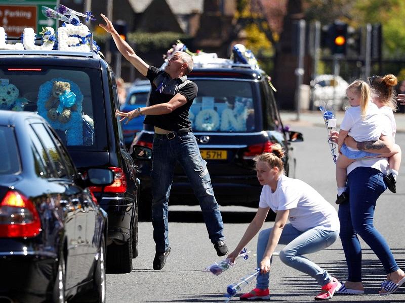 Lacrimi și jucării pentru Alfie Evans. Mii de oameni și-au luat rămas bun de la băiețelul de 23 de luni, depus într-un sicriu alb pictat cu soldăței