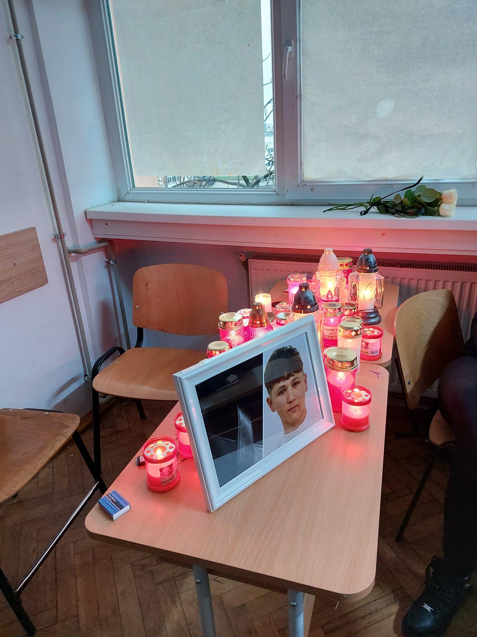 Altar de lumânări în banca lui Cosmin, adolescentul de 15 ani ucis de un şofer băut în Buzău: "Ochii încărcați de lacrimi spun mai mult decât orice cuvânt" | Imaginea 2 din 4 | Galerie Foto