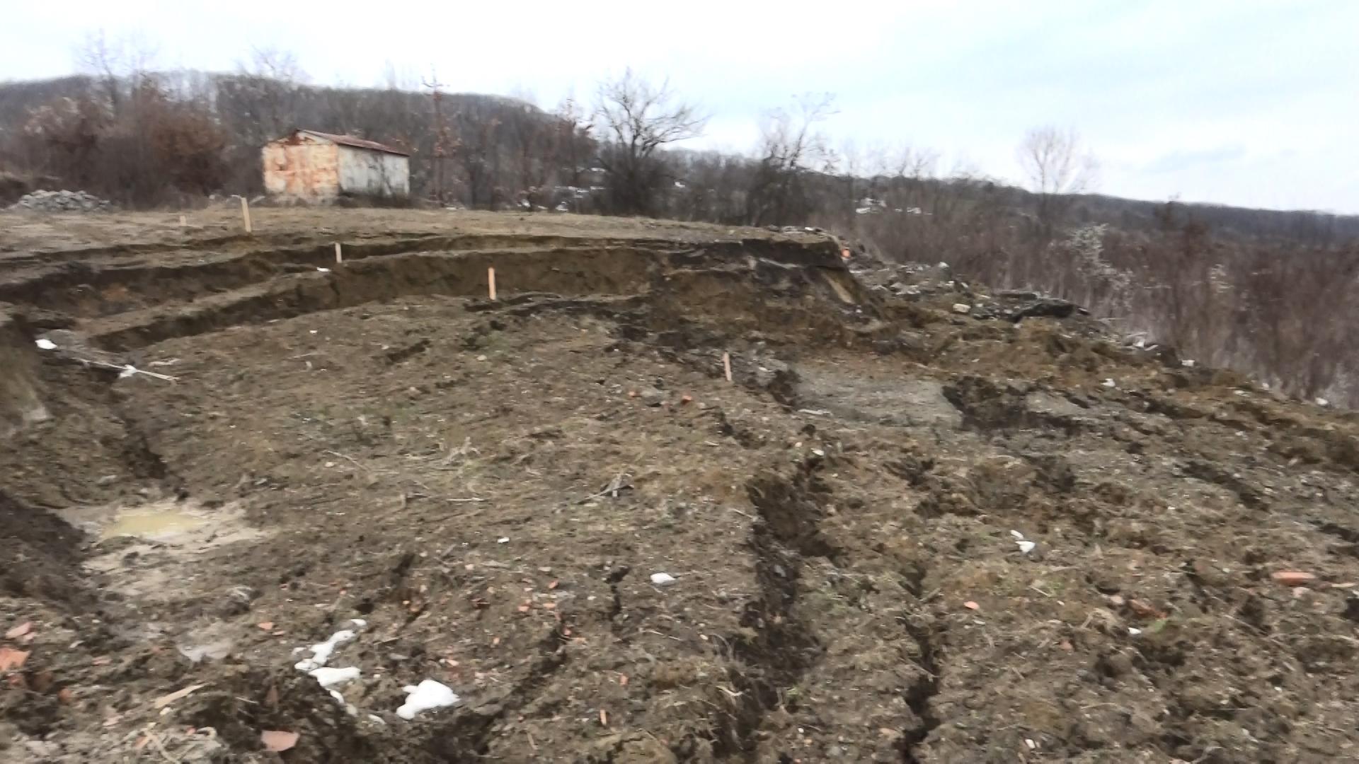 Alunecare masivă de teren la ieşire din Bistriţa. O parte din Dealul Jelnei s-a deplasat spre un drum judeţean