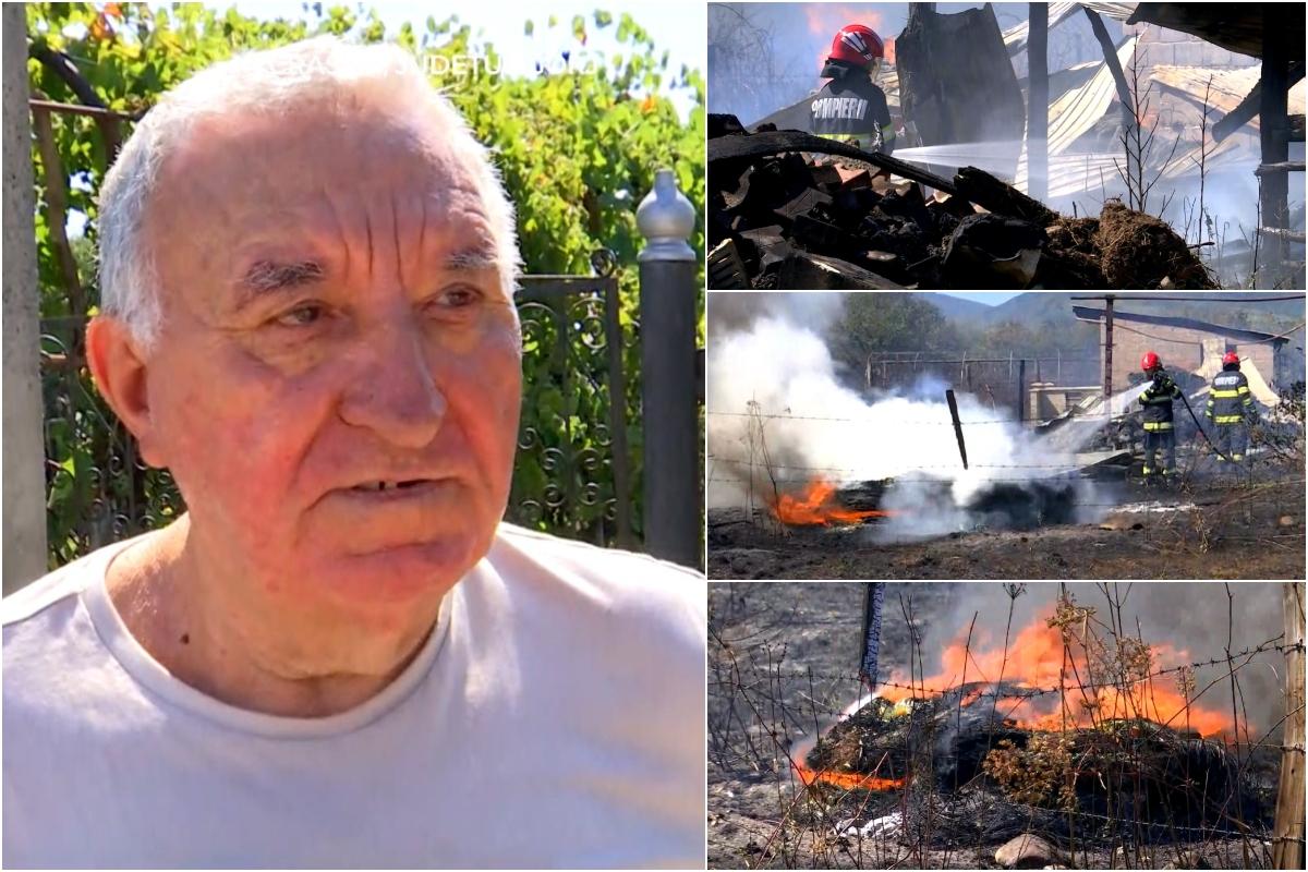 "Am simţit pericolul". Sat ameninţat de flăcări în Gorj. Pârâul din apropiere care putea ajuta pompierii a secat