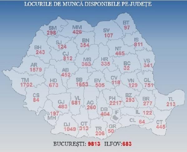 Harta locuri de muncă vacante în România, februarie 2018 | Sursa foto: Anofm.ro