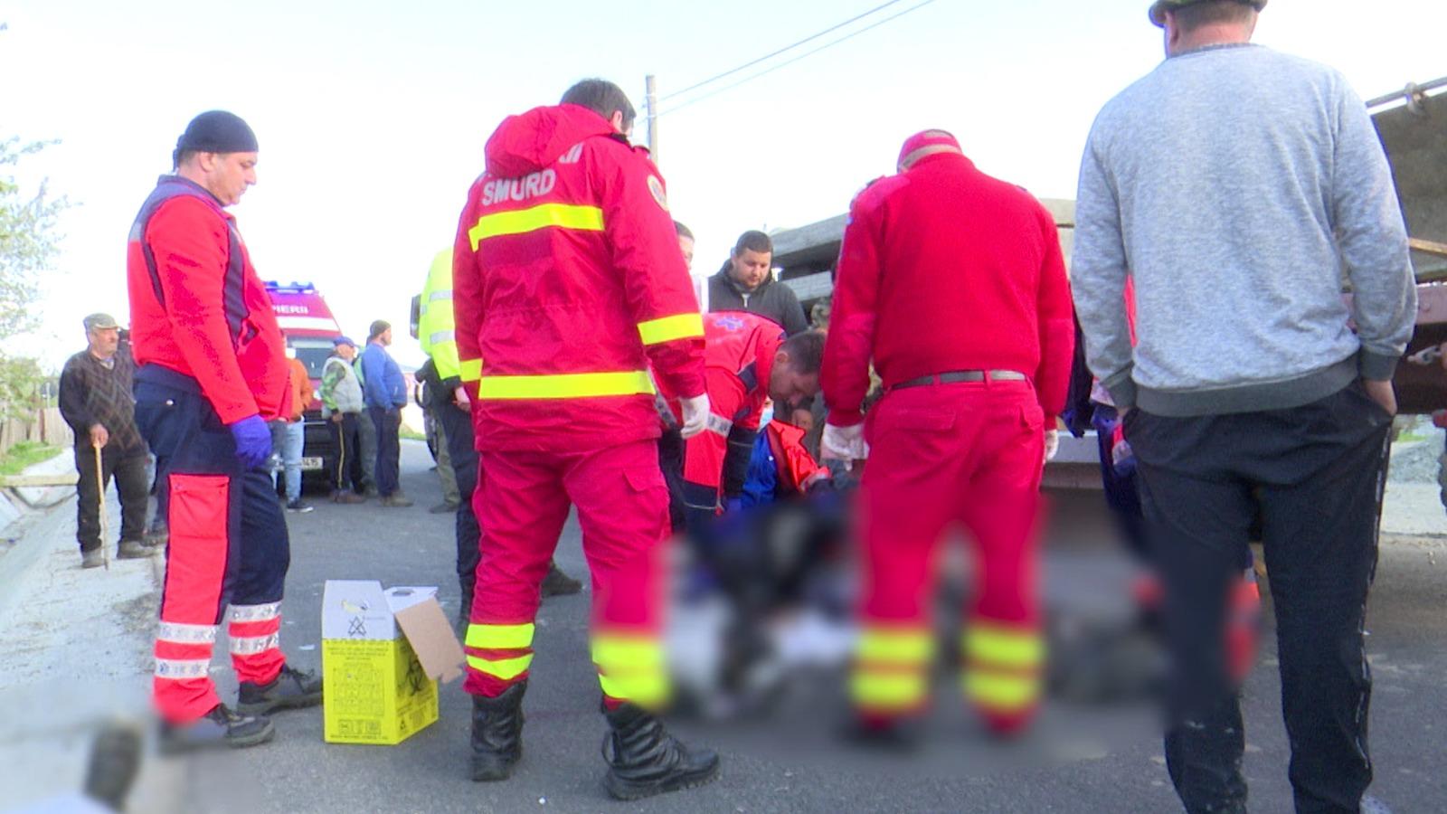 ANIMAȚIE. Cum și-au găsit sfârșitul cei doi muncitori din Bacău, în timp ce descărcau materiale de construcții dintr-un camion