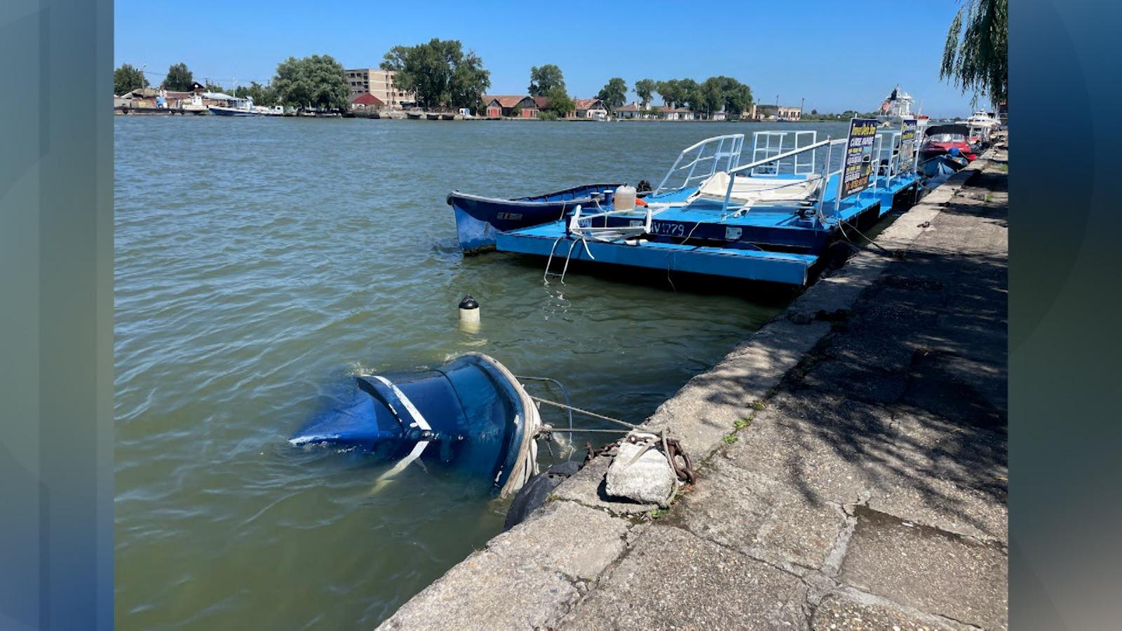 ANIMAȚIE. Momentul accidentul neobișnuit din portul Sulina, suprins de camerele de supraveghere. Remorcherul a fost total pierdut de sub control