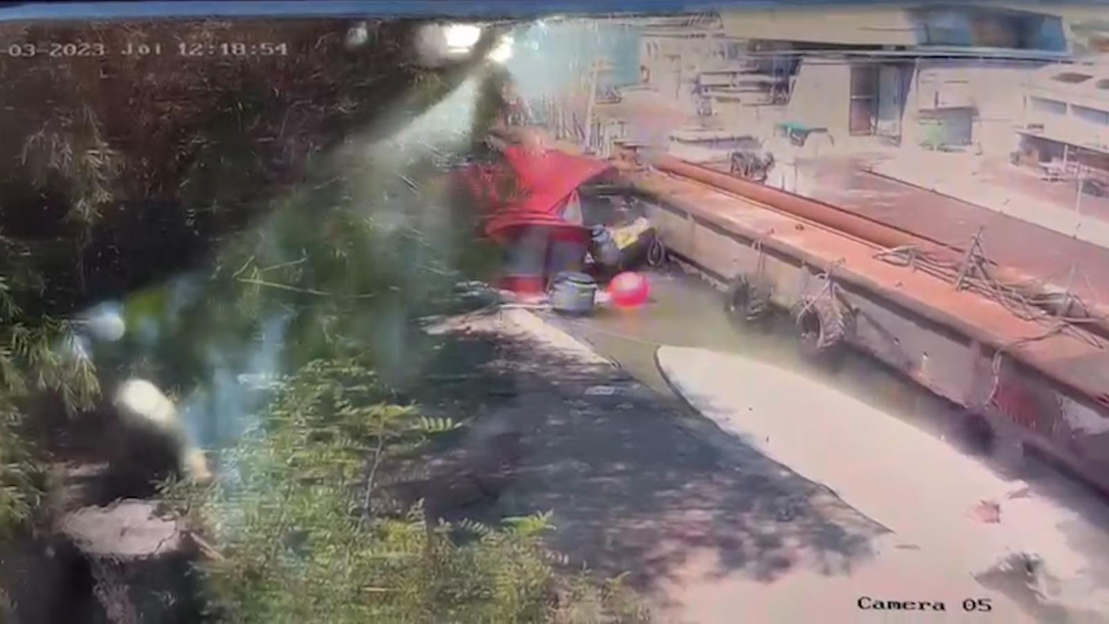 ANIMAȚIE. Momentul accidentul neobișnuit din portul Sulina, suprins de camerele de supraveghere. Remorcherul a fost total pierdut de sub control
