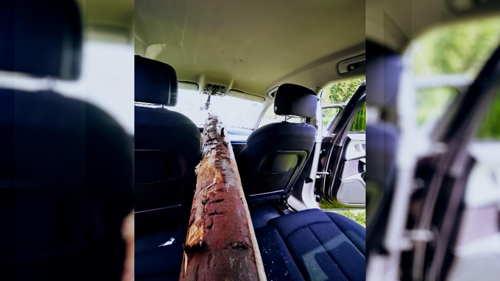 ANIMAŢIE. Un buştean căzut dintr-un TIR s-a înfipt în parbrizul unui Audi, în mers. Şoferul, convins că a fost salvat de Biblia din maşină: "Este tot timpul acolo"