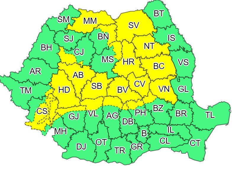 9 judeţe şi Capitala, sub cod galben de vânt puternic până la ora 20