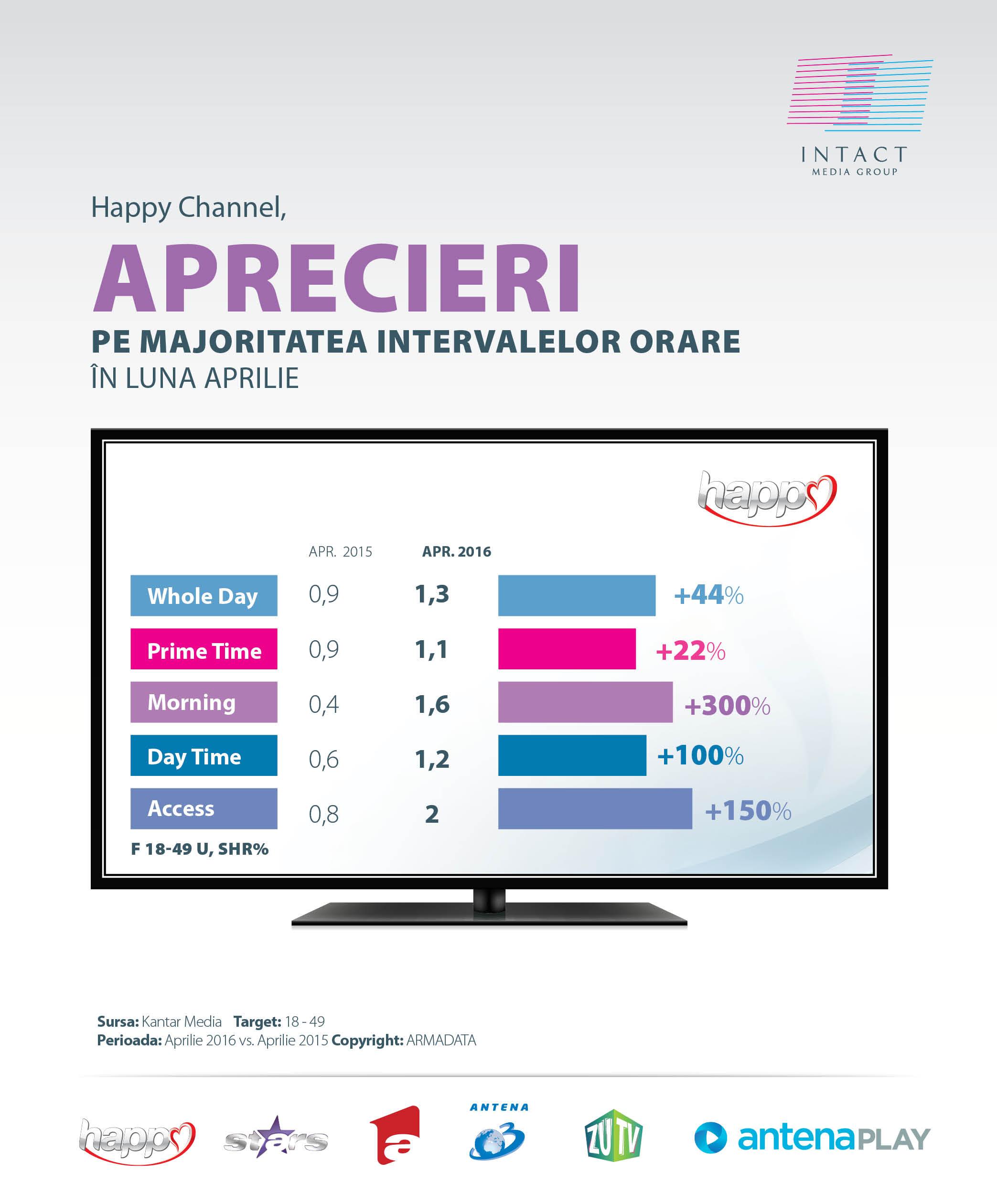 Antena 1, creștere a cotei de piață în Prime-Time cu 18%, in luna aprilie, comparativ cu 2015