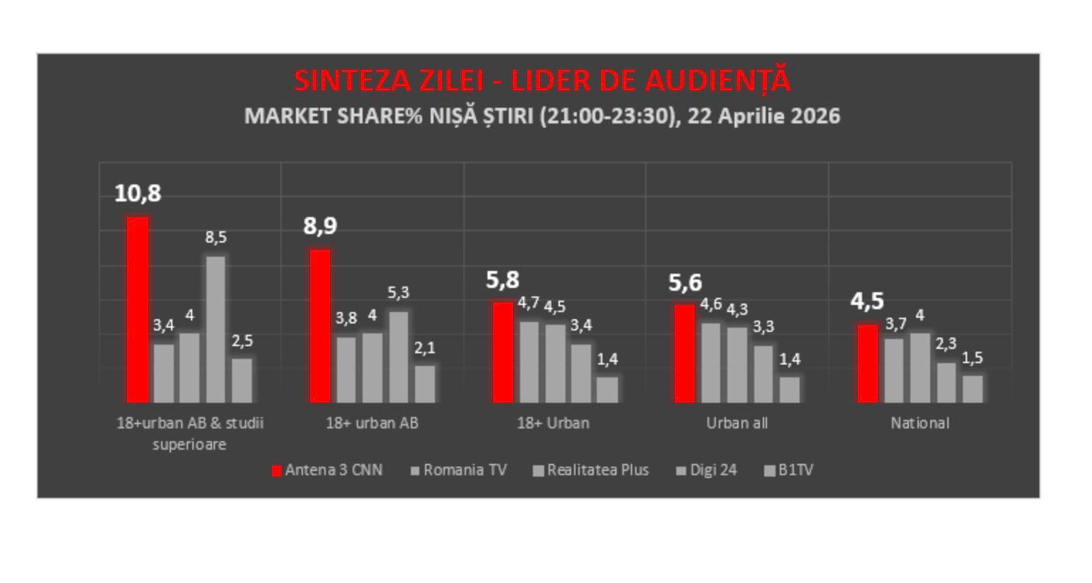 Antena 3 CNN, cea mai urmărită televiziune de ştiri în ziua consultărilor de la Cotroceni