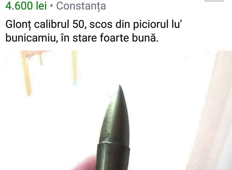 Tanarul a postat pe Facebook un anunt prin care vindea glontul cu care a fost impuscat bunicul sau | Sursa foto: Facebook