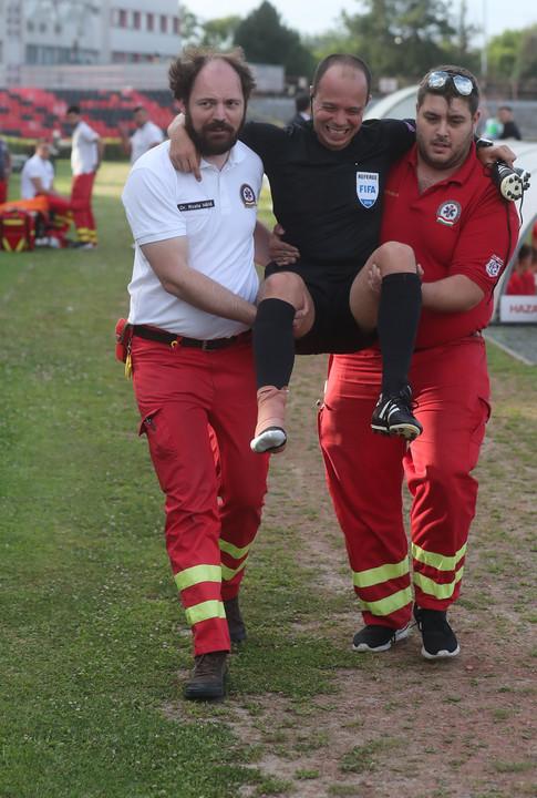 Arbitrul Marius Avram a fost scos pe targă din teren, la un meci din Europa League, în Ungaria (video)