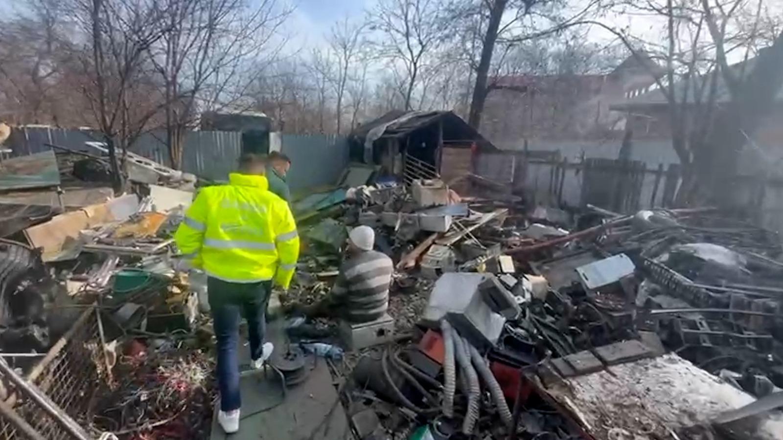 "Atât, şefule. Nu toată lumea, doi poliţişti". Imagini șocante la Mătăsaru: munți de gunoaie și fier vechi, inclusiv epave de autobuze, tronează în curțile localnicilor