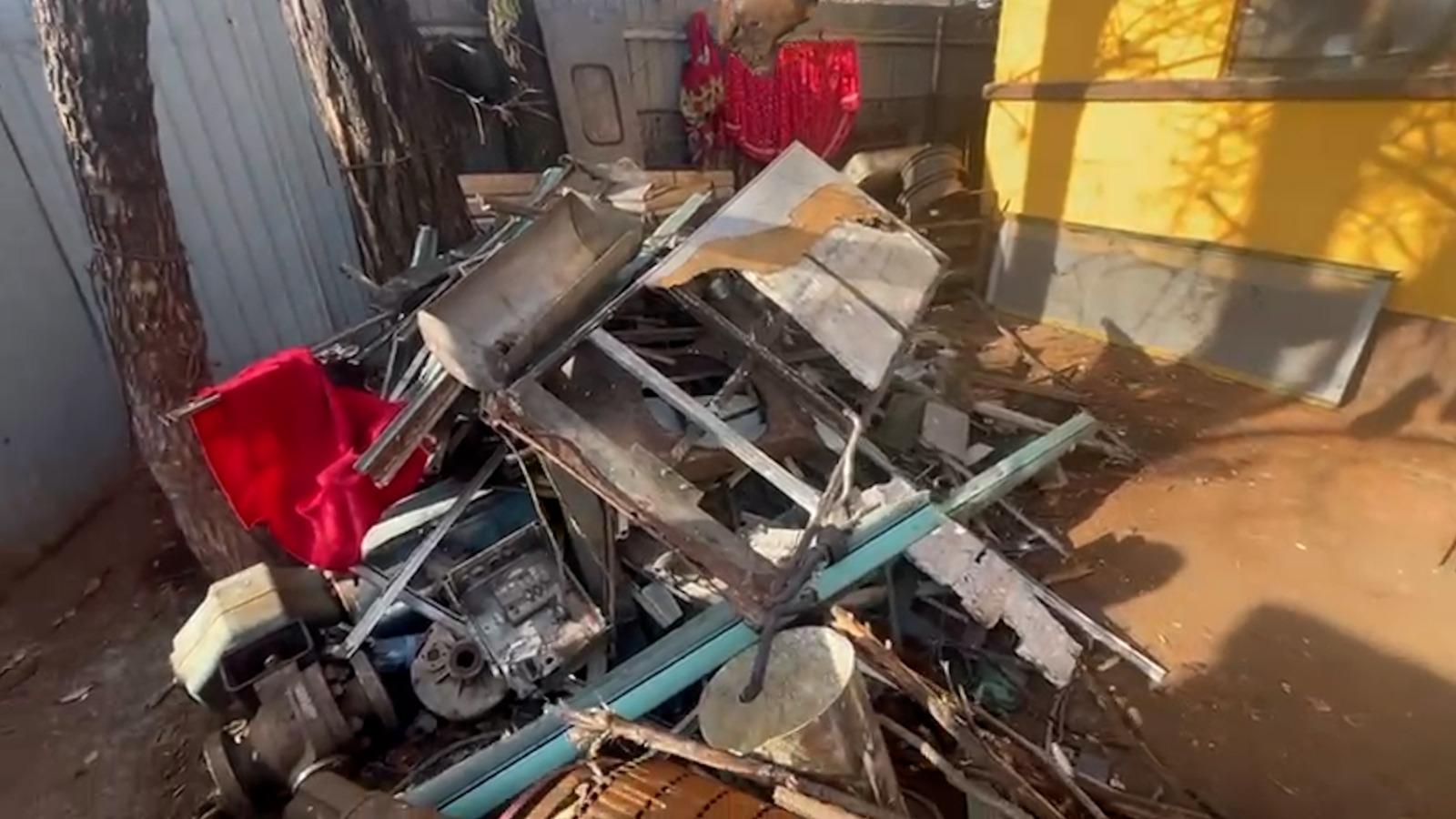 "Atât, şefule. Nu toată lumea, doi poliţişti". Imagini șocante la Mătăsaru: munți de gunoaie și fier vechi, inclusiv epave de autobuze, tronează în curțile localnicilor