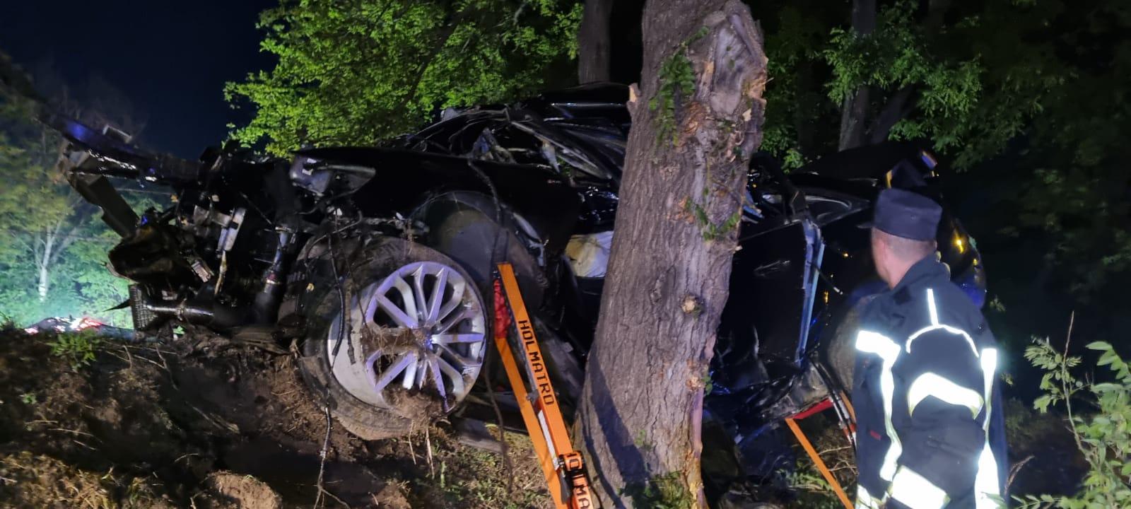 Audi A6 încolăcit în jurul unui copac, pe un drum din Medgidia. Bolidul s-a făcut praf, doi tineri au murit pe loc - VIDEO