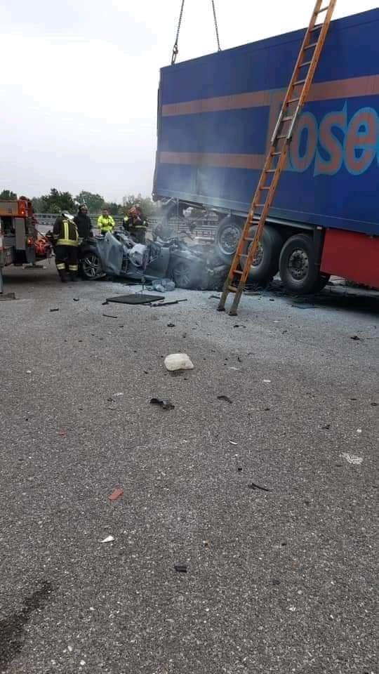 Audi pulverizat într-un TIR. Şoferul a intrat cu 260 la oră într-o parcare, în Italia