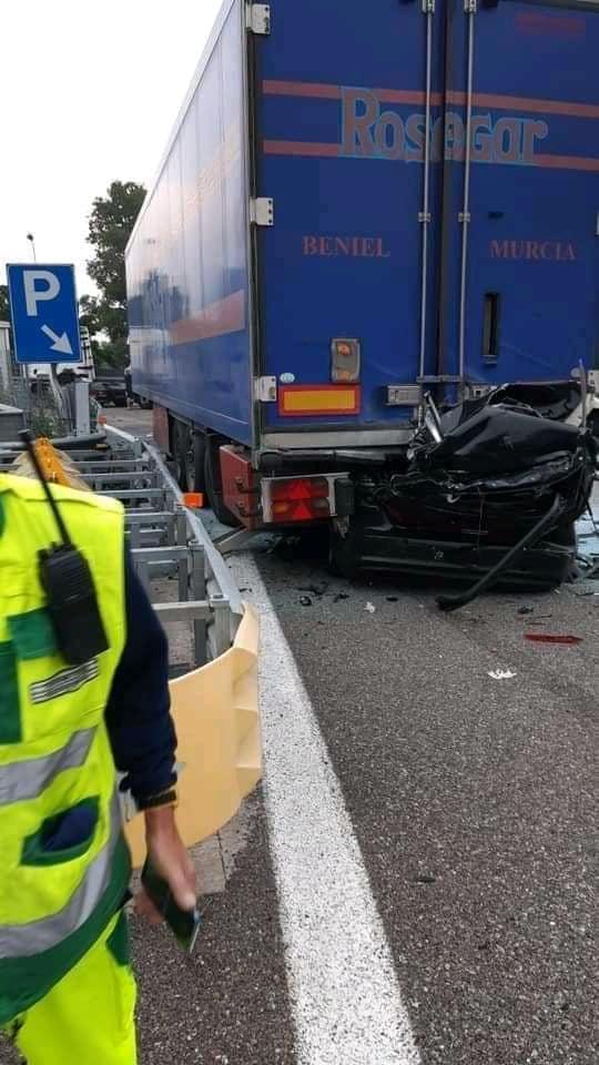 Audi pulverizat într-un TIR. Şoferul a intrat cu 260 la oră într-o parcare, în Italia