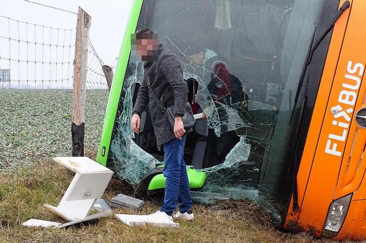 Autocar românesc răsturnat în Ungaria! Șoferul a adormit la volan, în timp ce se întorcea din Franța. Nouă persoane erau la bord (Foto)