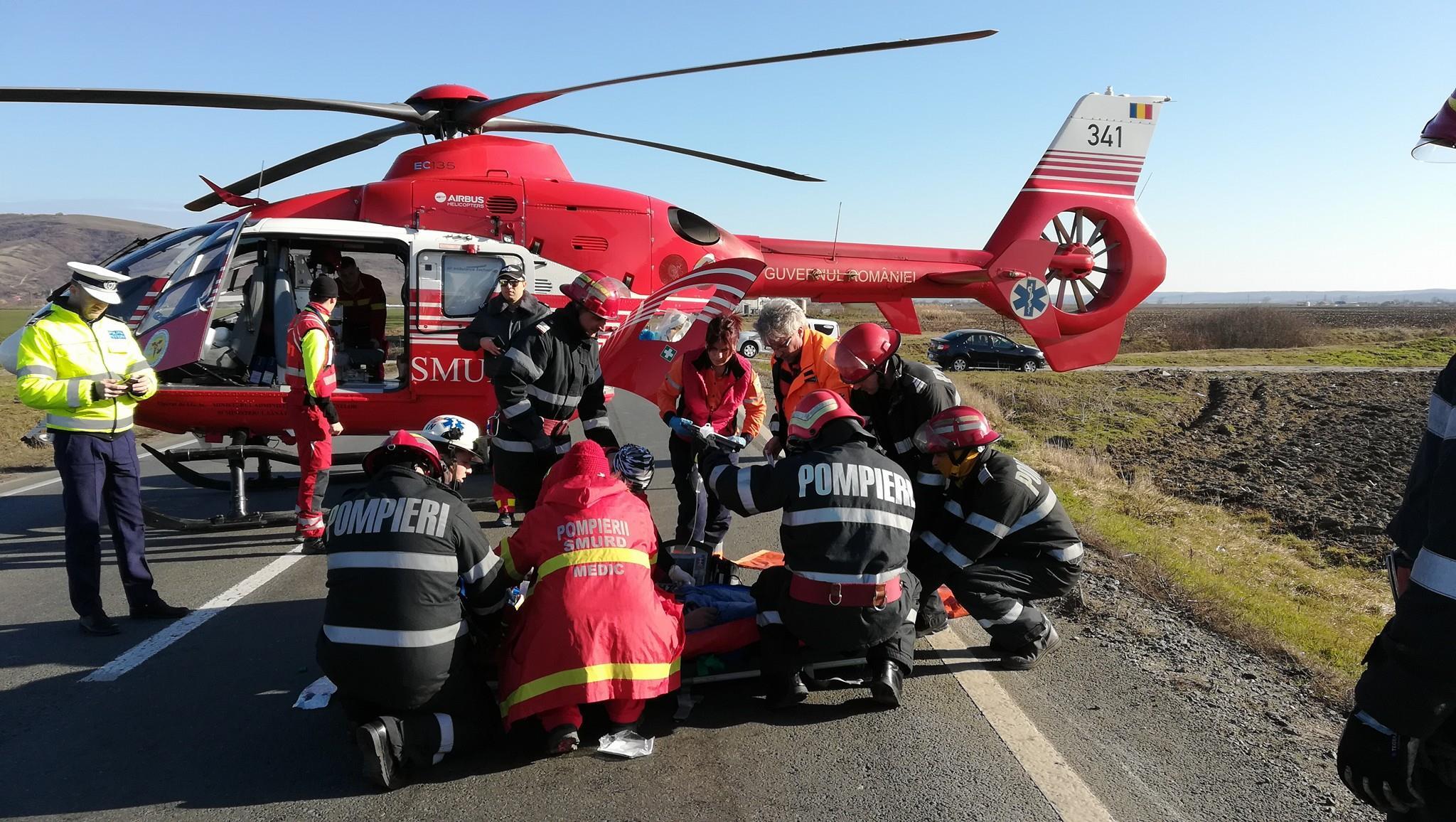 Un autoturism a fost strivit de două TIR-uri în Arad. Doi bărbaţi au rămas prinşi între fiarele contorsionate (Foto)