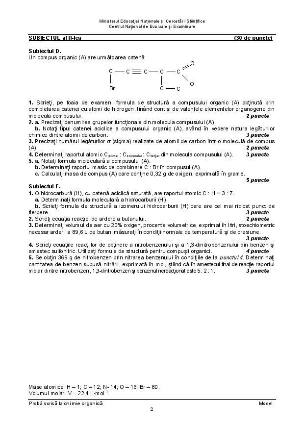 BACALAUREAT 2017. SUBIECTE de CHIMIE și baremul de evaluare și notare