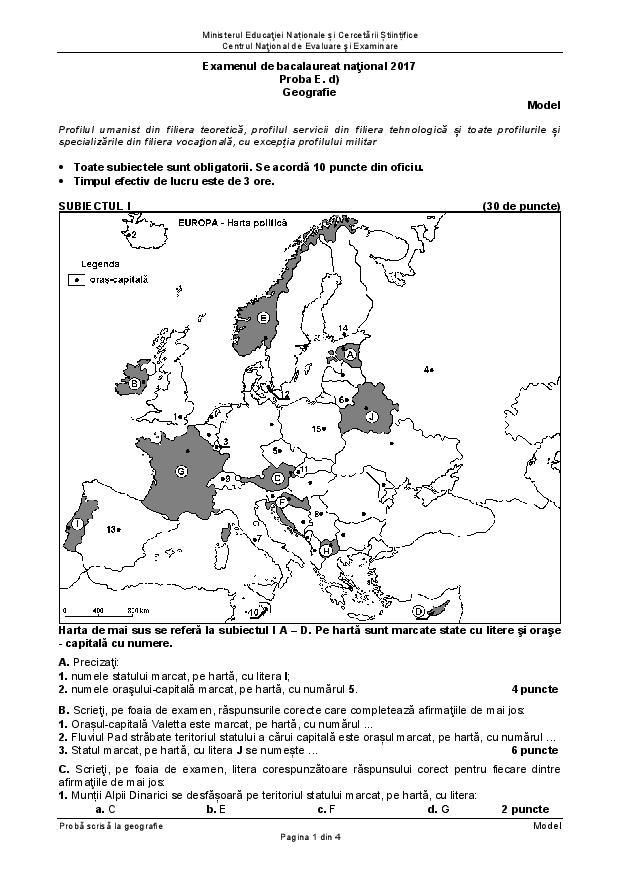 BACALAUREAT 2017. SUBIECTE de GEOGRAFIE și baremul de evaluare și notare