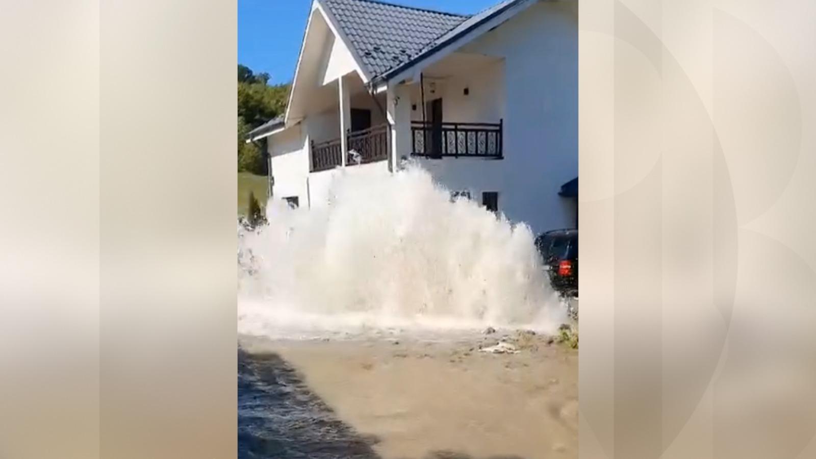 Băcăuanii primesc din nou apă cu porţia, după ce una dintre conductele principale care aprovizionează oraşul s-a spart. Culmea, ţeava trece pe sub o casă