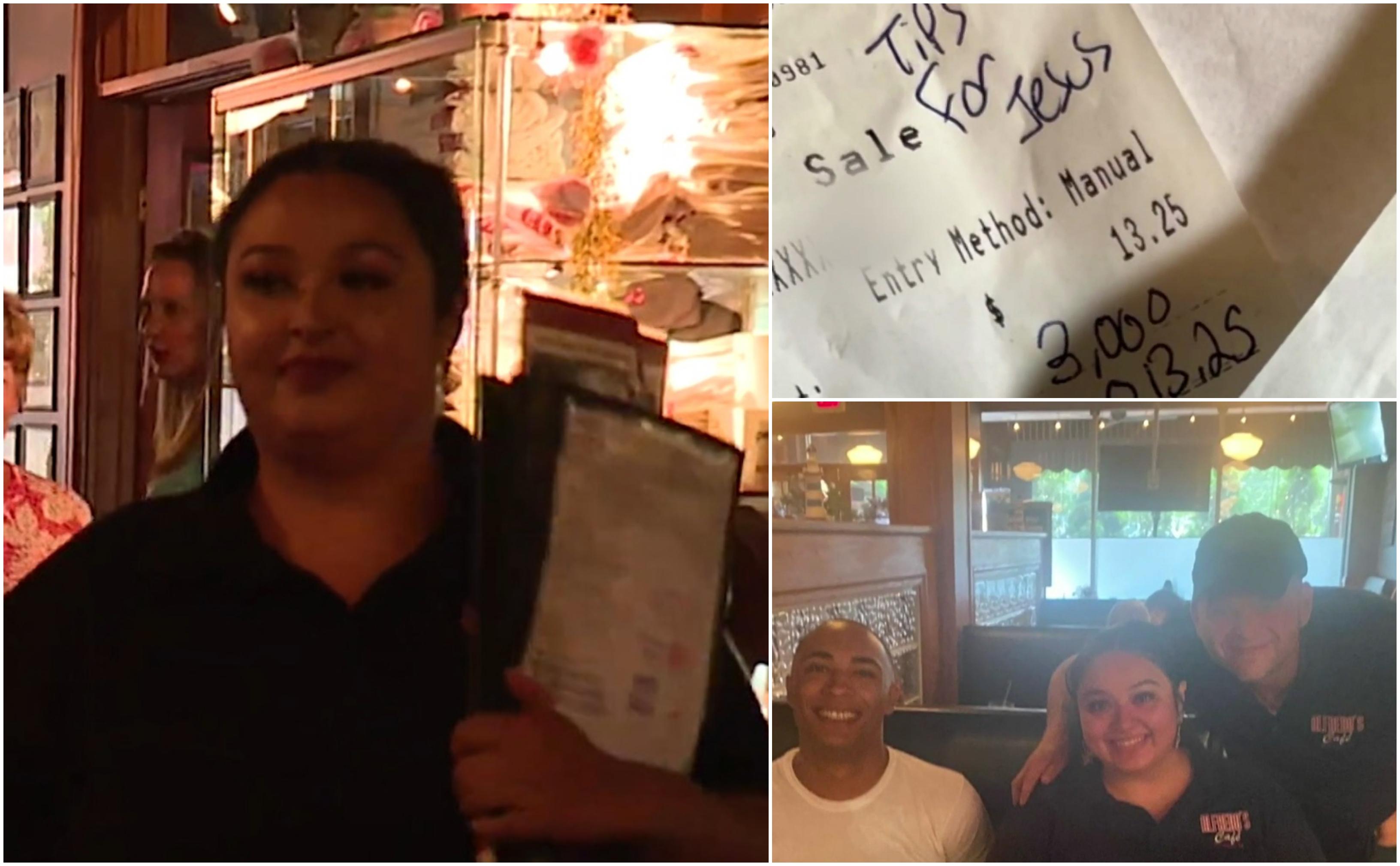 ''Bacșiș pentru Iisus.'' O chelneriţă a primit un ciubuc fabulos de 3.000 de dolari pentru o consumație de numai 13 dolari, în SUA