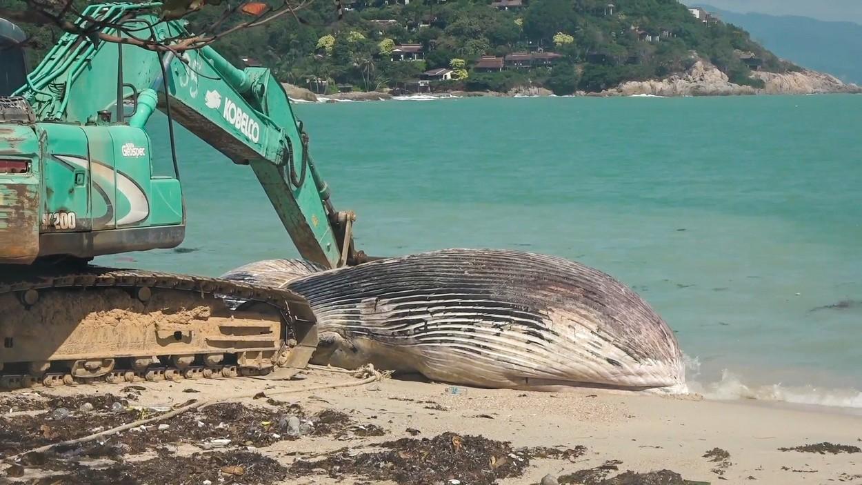 Balenă uriaşă, descoperită moartă pe o plajă din Thailanda. Pentru ridicarea sa a fost nevoie de un buldoexcavator | Sursa foto: Profimedia