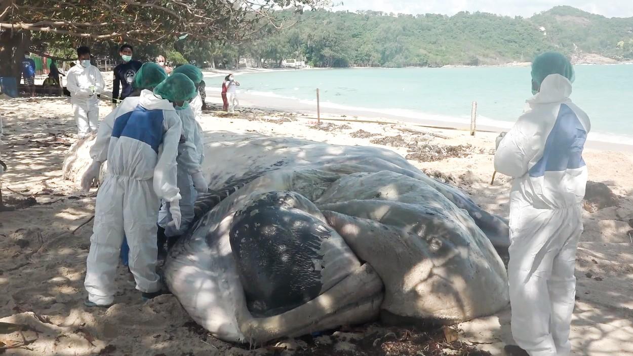 Balenă uriaşă, descoperită moartă pe o plajă din Thailanda. Pentru ridicarea sa a fost nevoie de un buldoexcavator | Sursa foto: Profimedia