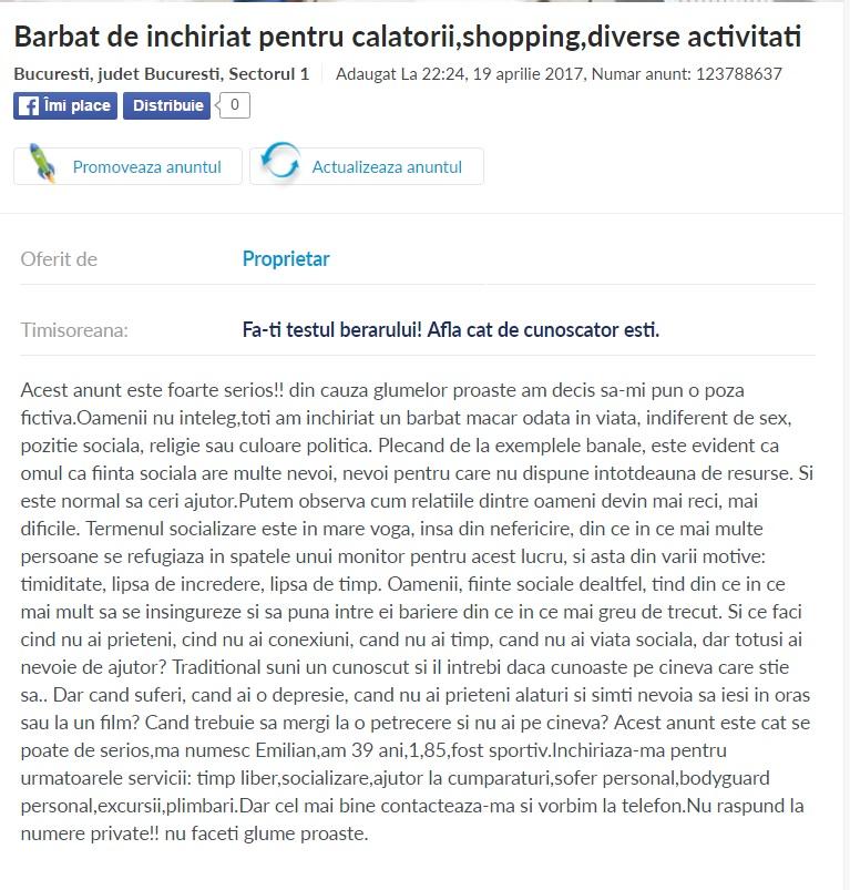 Bărbat de... ÎNCHIRIAT! Un postare de pe un site de anunțuri stârneşte HOHOTE DE RÂS! Un bărbat ÎŞI VINDE... simpla prezenţă