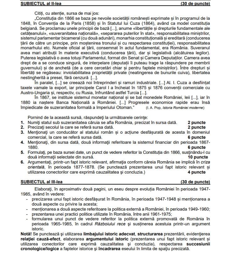 Barem de corectare Bacalaureat 2025 - Istorie, sesiunea de toamnă. Cum trebuiau rezolvate subiectele