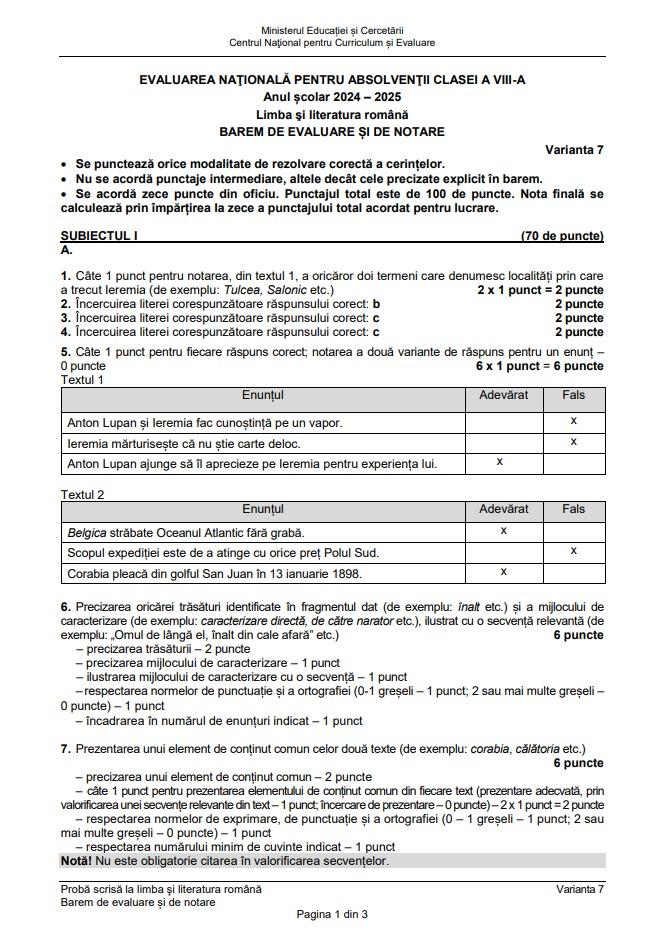 Barem Evaluare Naţională 2025 - limba română. Cum trebuiau rezolvate subiectele