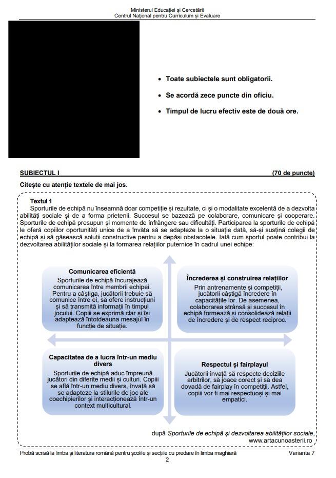 Barem Evaluare Naţională 2025 - limba română. Cum trebuiau rezolvate subiectele