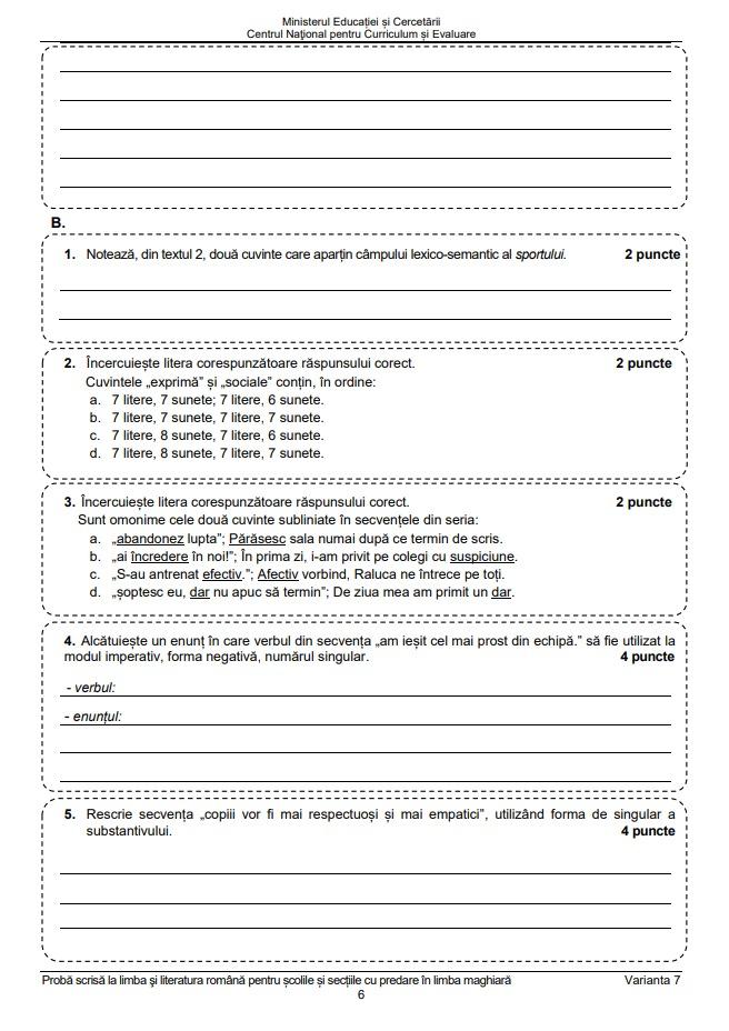 Barem Evaluare Naţională 2025 - limba română. Cum trebuiau rezolvate subiectele