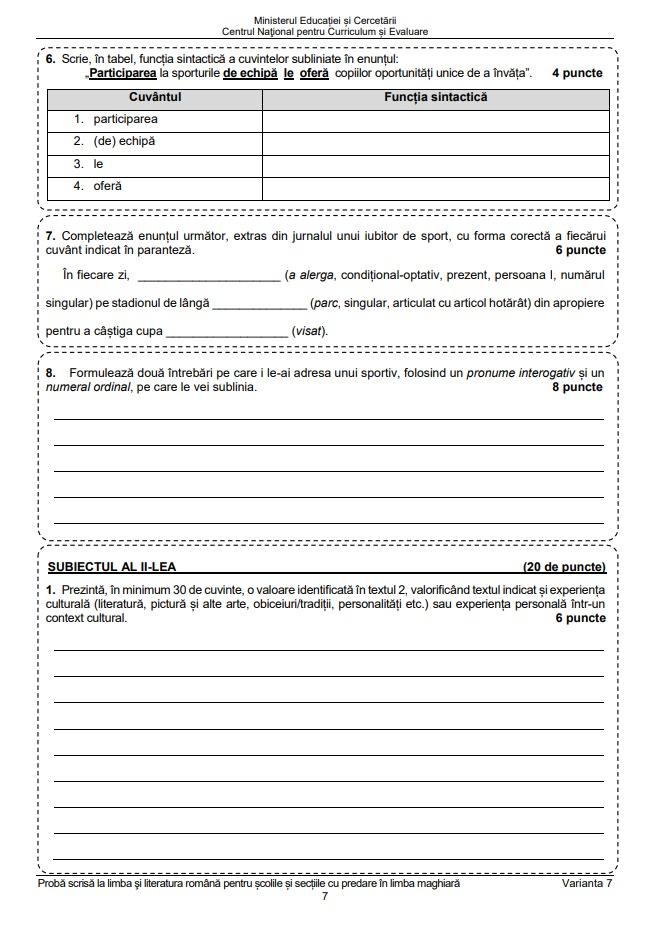 Barem Evaluare Naţională 2025 - limba română. Cum trebuiau rezolvate subiectele