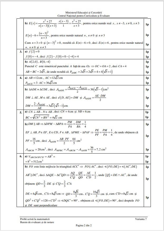 Barem Evaluare Naţională 2025 - Matematică. Cum se punctează fiecare exercițiu