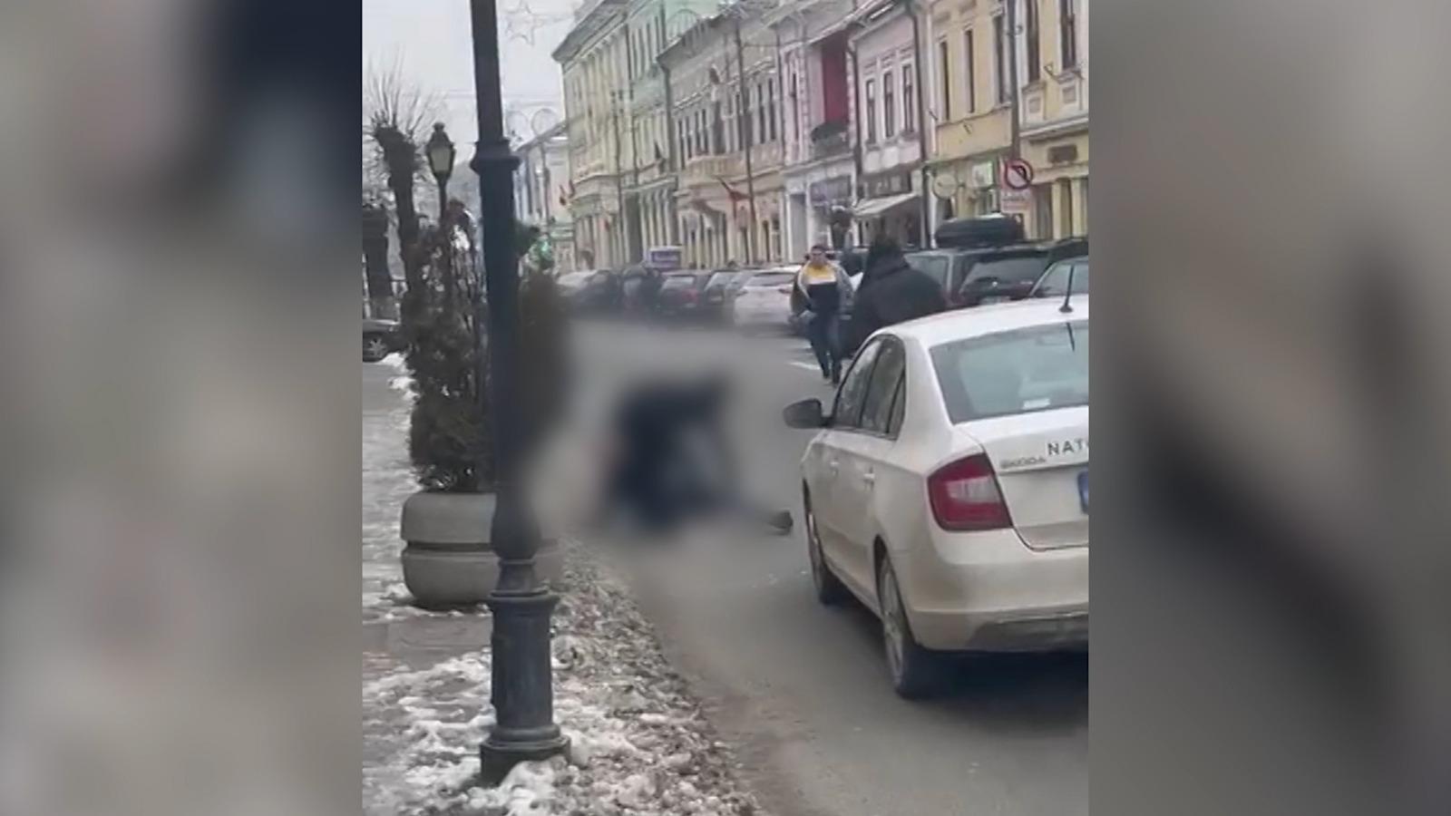 Bătaie ca-n galele MMA pe stradă, în Sighetu Marmaţiei. Doi tineri și-au împărțit pumni și picioare, în mijlocul drumului