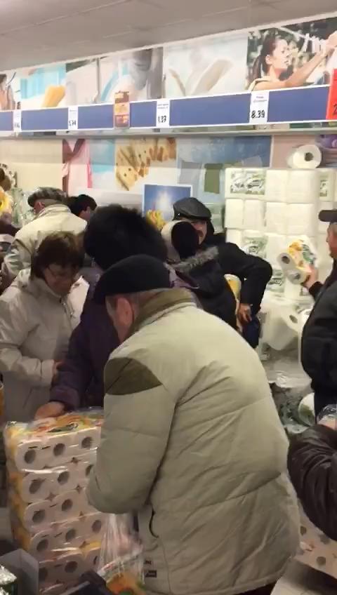 Isterie pentru HÂRTIE IGIENICĂ într-un supermarket din Brăila. Reducerile le-au luat mințile românilor, s-au călcat în picioare cu SUTELE! (VIDEO ȘOCANT)