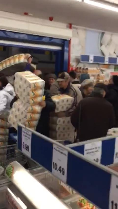 Isterie pentru HÂRTIE IGIENICĂ într-un supermarket din Brăila. Reducerile le-au luat mințile românilor, s-au călcat în picioare cu SUTELE! (VIDEO ȘOCANT)