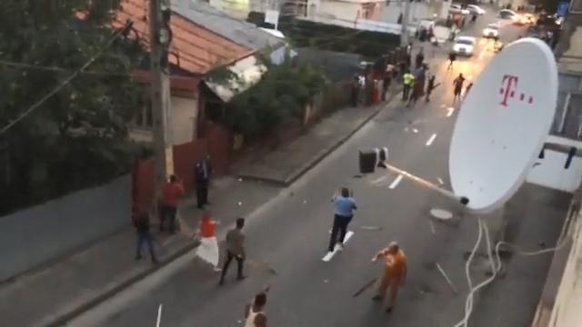 Bătaie sângeroasă cu zeci de persoane pe o stradă din Neamţ, cu răngi, bâte, poliţişti şi focuri de armă (Video)