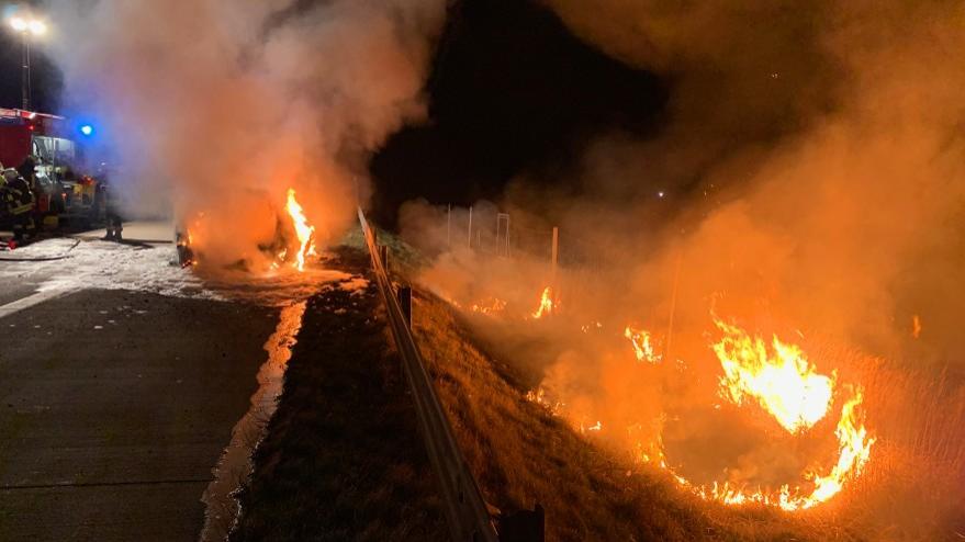 Bateria unui Mercedes explodează când pompierii stingeau bolidul aprins, pe o autostradă din Germania