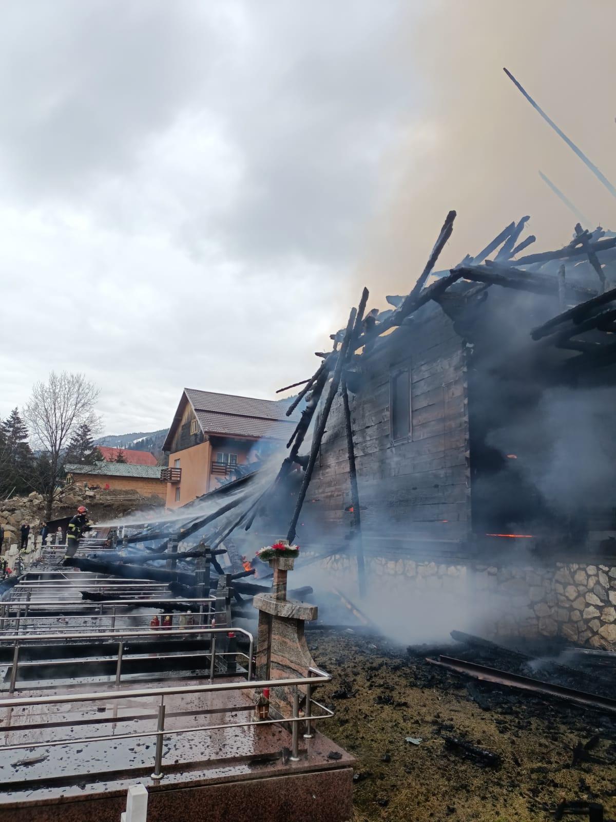 Biserica de lemn din Borşa, mistuită de flăcări în ziua de Florii. Lăcaşul s-a făcut scrum, intervenţie dificilă a pompierilor