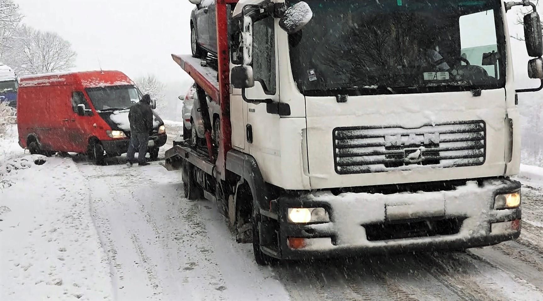 Blocaje pe drumurile naţionale din cauza zăpezii abundente. Mai multe maşini şi camioane au ieşit în decor | Sursa foto: Captura video