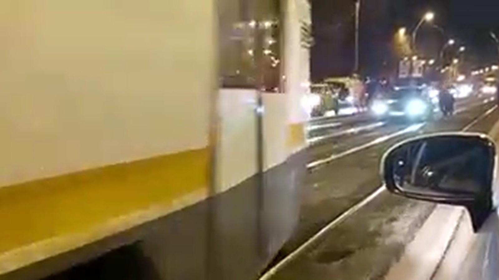 BMW blocat pe șina de tramvai în Rahova. Șoferul a vrut să evite statul în coloană, dar a omis bordura