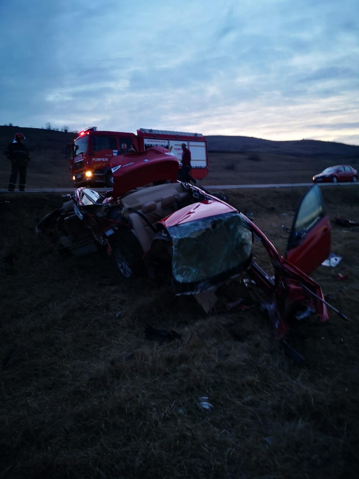 BMW despicat în jumătate, la impactul cu un cap de pod, în Vaslui. Şoferul a tras doar o sperietură