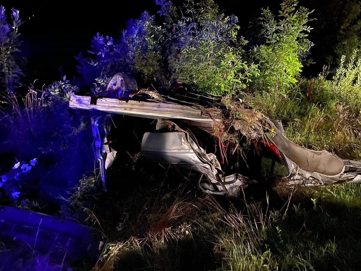 BMW făcut bucăți care au zburat pe câmp, șoferul a intrat cu toată viteza într-un TIR, la Bumbești