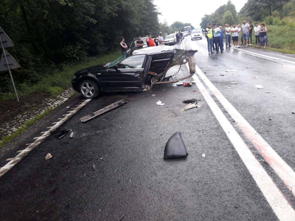 BMW rupt în două la Avrig, după ce şoferul a intrat pe contrasens. Un tânăr a murit, alţi doi, grav răniţi